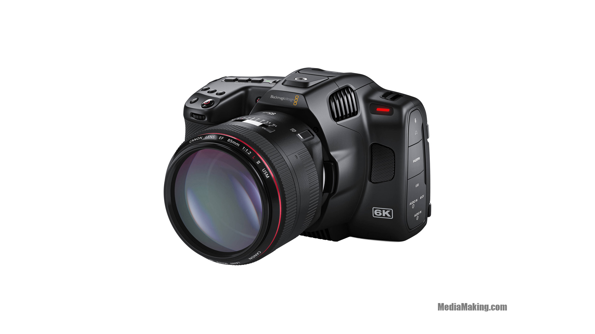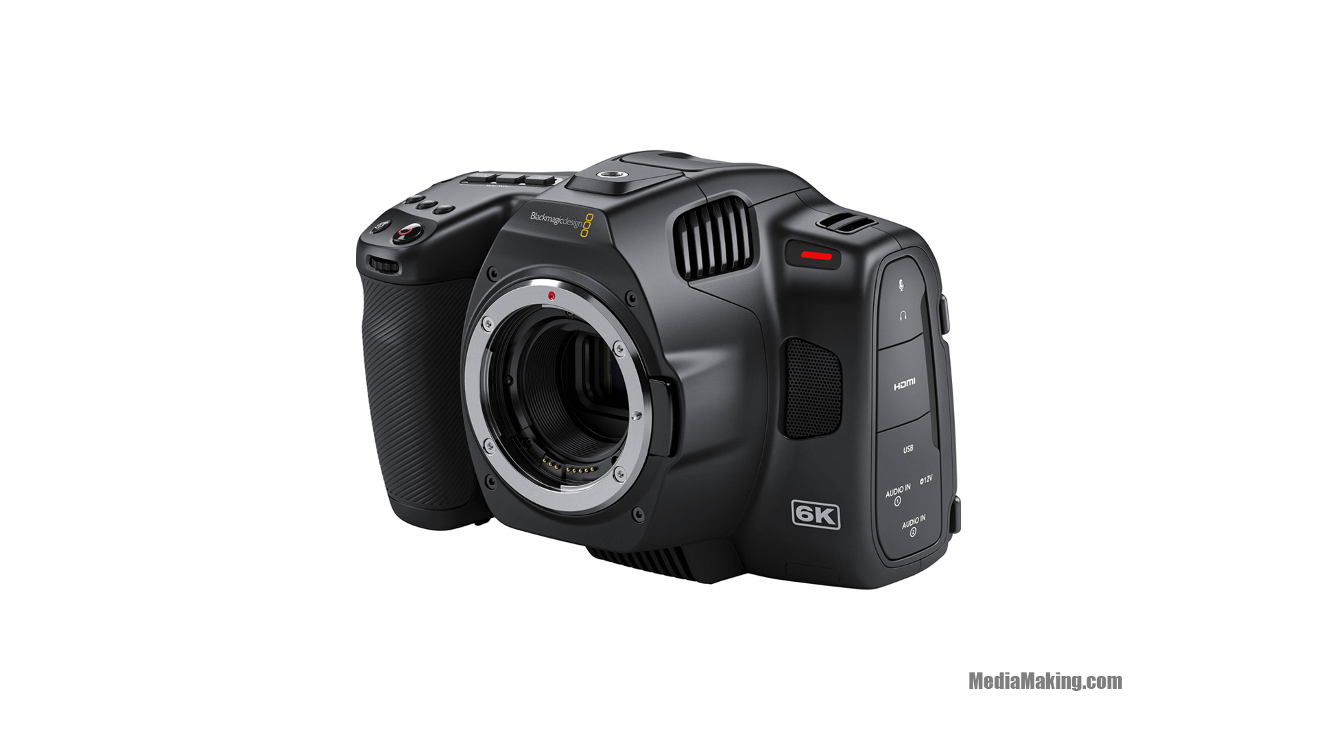 Blackmagic Pocket Cinema Camera 6K Pro can turn one frame into two by cropping a second shot from one frame, upscaling to 8K, or simply capturing rich, detailed footage with your favorite EF/EF-S-mount lens. The updated Gen 5 internal color processing makes it easy to intercut 6K Pro, 6K, and BMPCC 4K footage. Record using the internal CFast 2.0 and SD/UHS-II card slots or via the full-size HDMI port to an optional ATEM Mini switcher for live streaming, or output via the USB Type-C port to capture longer clips to an external drive. The 6K Pro includes a DaVinci Resolve Studio license and supports Blackmagic Raw capture from the sensor. Using the Raw format with the sensor’s metadata simplifies editing to suit any project and makes editing easier with DaVinci Resolve. The compact Blackmagic Pocket Cinema Camera 6K Pro retains the familiar controls and menu layout of the 6K model, such as ISO support up to 25,600, 13 stops of dynamic range, and 1920 x 1080 HDR monitor output. Professional audio support now includes two mini XLR inputs with phantom +48V power, a 3.5mm stereo input, a mono speaker, a headphone output, and a built-in stereo mic system. Additional pro features include lens metadata support, 3D LUT application for both monitoring and recording, up to 21.2MP still image capture, and a multifunction grip that enables single-handed operation. Sync multiple cameras for a concert, event, or other multicamera shoots by linking an external timecode generator to the Blackmagic Pocket Cinema Camera 6K Pro internal timecode generator (accessed via the 3.5mm audio port). Then save valuable time by using Resolve to automatically sync your multicamera shots in post.