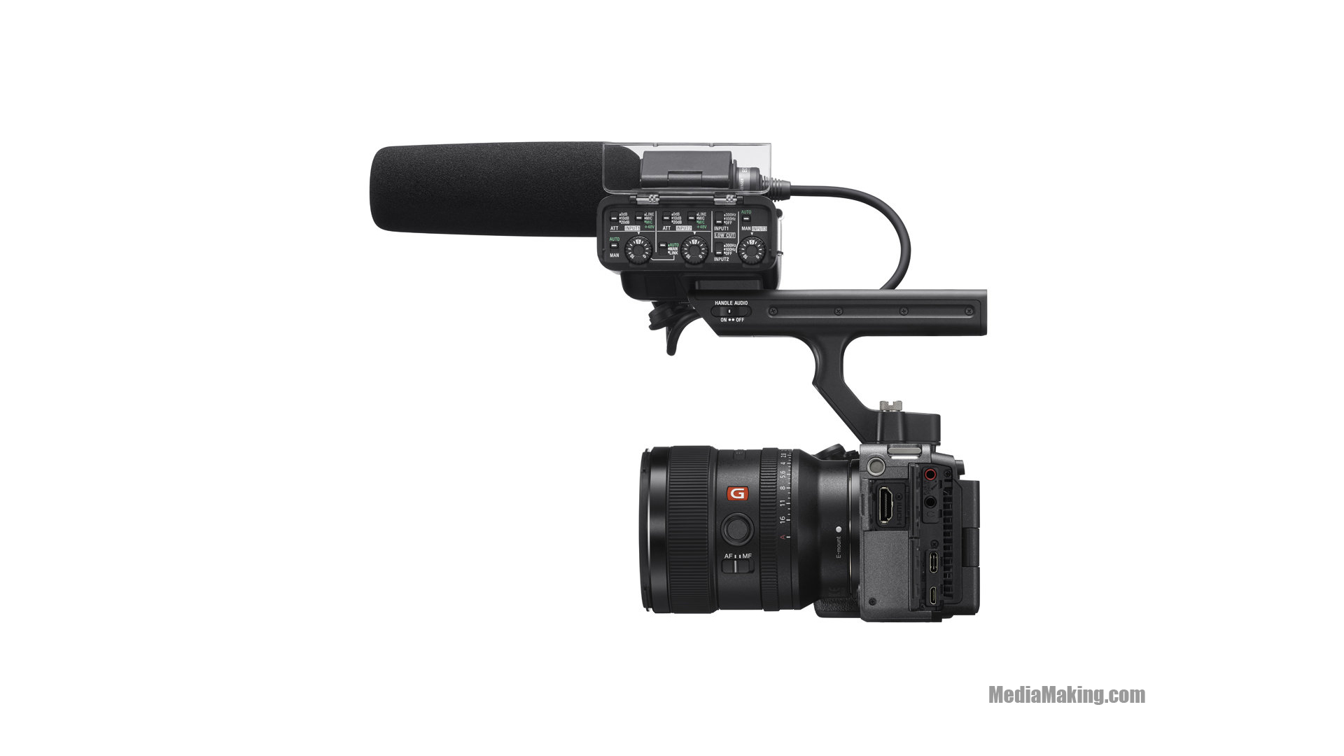 In addition to the built-in microphone, the full-size XLR connectors on the handle allow you to connect several professional microphones externally through a digital audio interface via Multi-Interface Shoe (MI). You can choose from three recording formats, including 4-channel 24-bit. Digital audio recording is also possible by connecting a digital microphone such as the ECM-B1M.