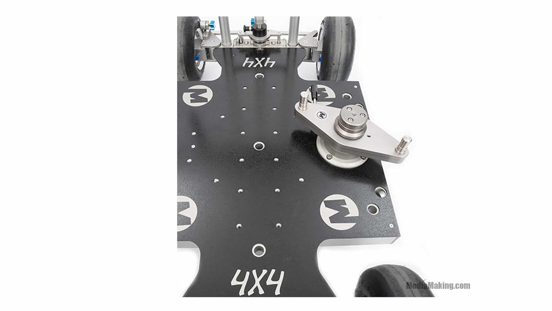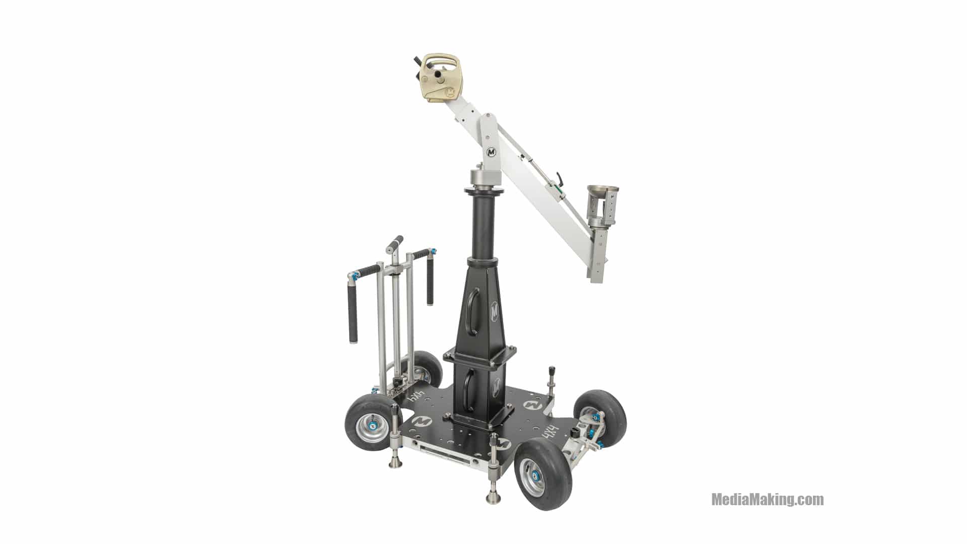 | MovieTech’s brand new 4 × 4 Dolly features many innovations that are not common in its class. By simply lifting the push bar, the operator can switch between 2 and 4 steering wheels. A stable stainless steel steering ensures long life and reliable control. |