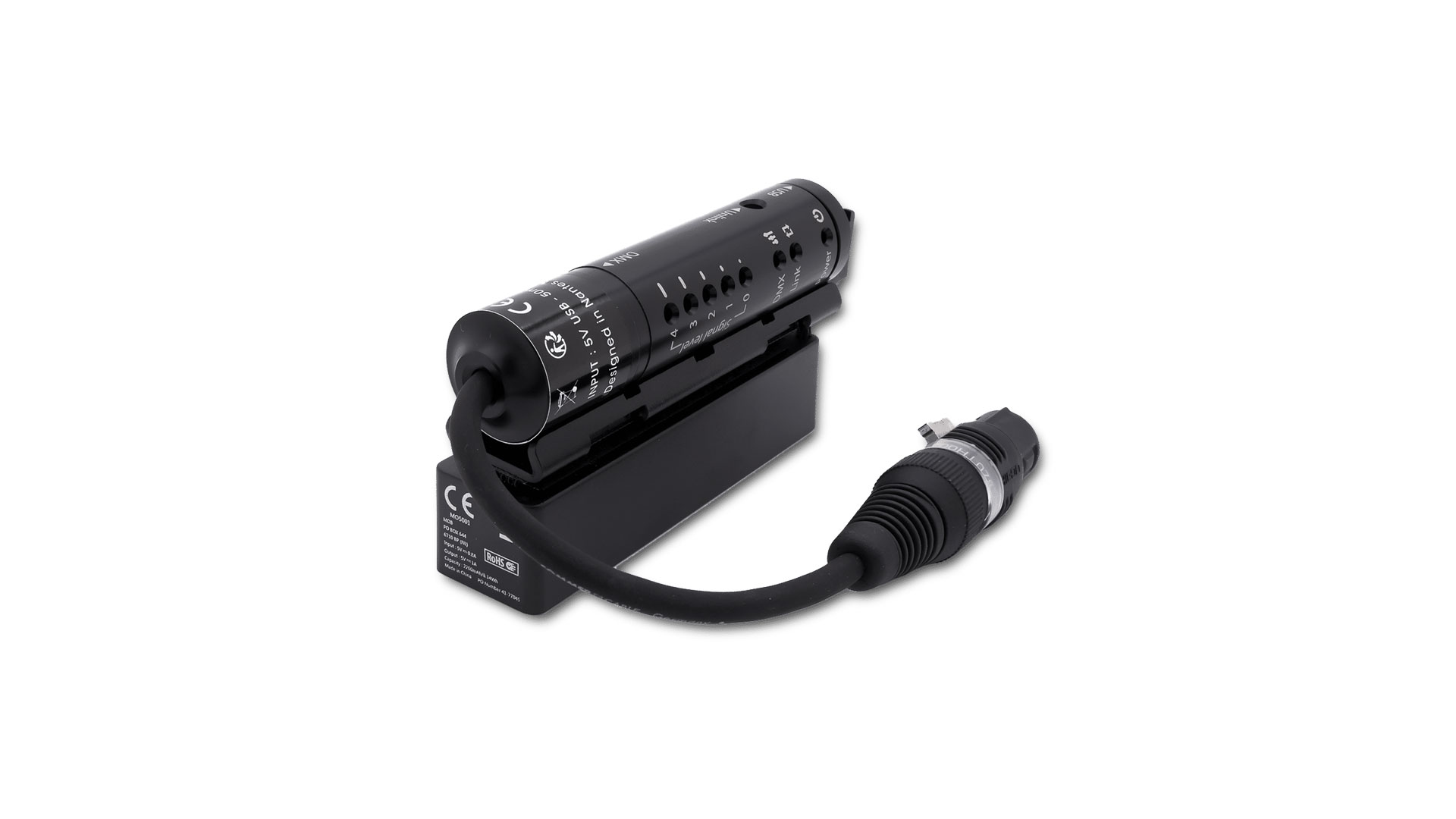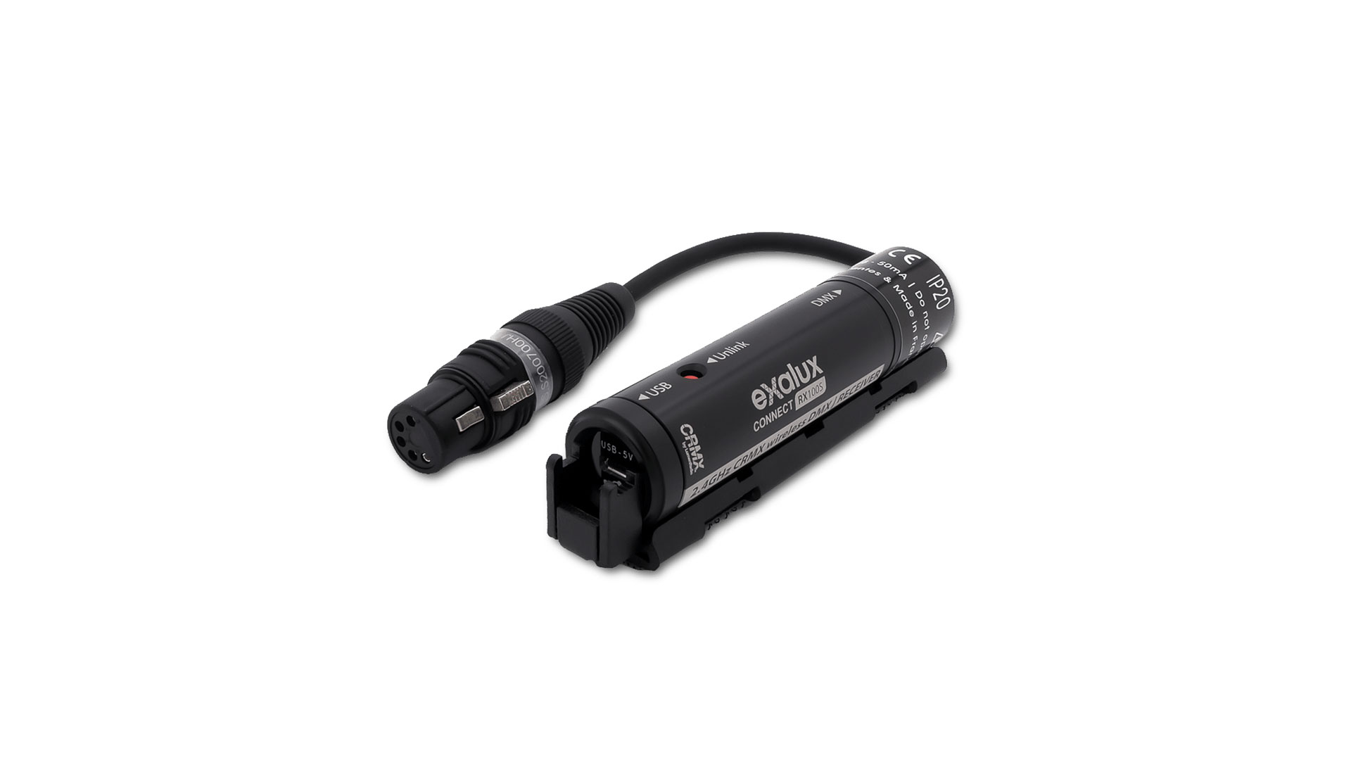 Exalux Connect RX100S Kit is a compact wireless DMX receiver especially designed to be powered through the USB connectors of a LED panel. It can run up to 10 hours with the small PowerBank battery and is compatible with any LED fixtures. The XLR connector on the cable makes the Connect RX100S Kit truly universal: it adapts to all lighting fixtures on the market regardless of the orientation of their DMX connector. A very small powerbank will be more than enough to power the DMX wireless receiver for more than 10 hours. No need to wait for the unit to be recharged, simply replace it when it is discharged.