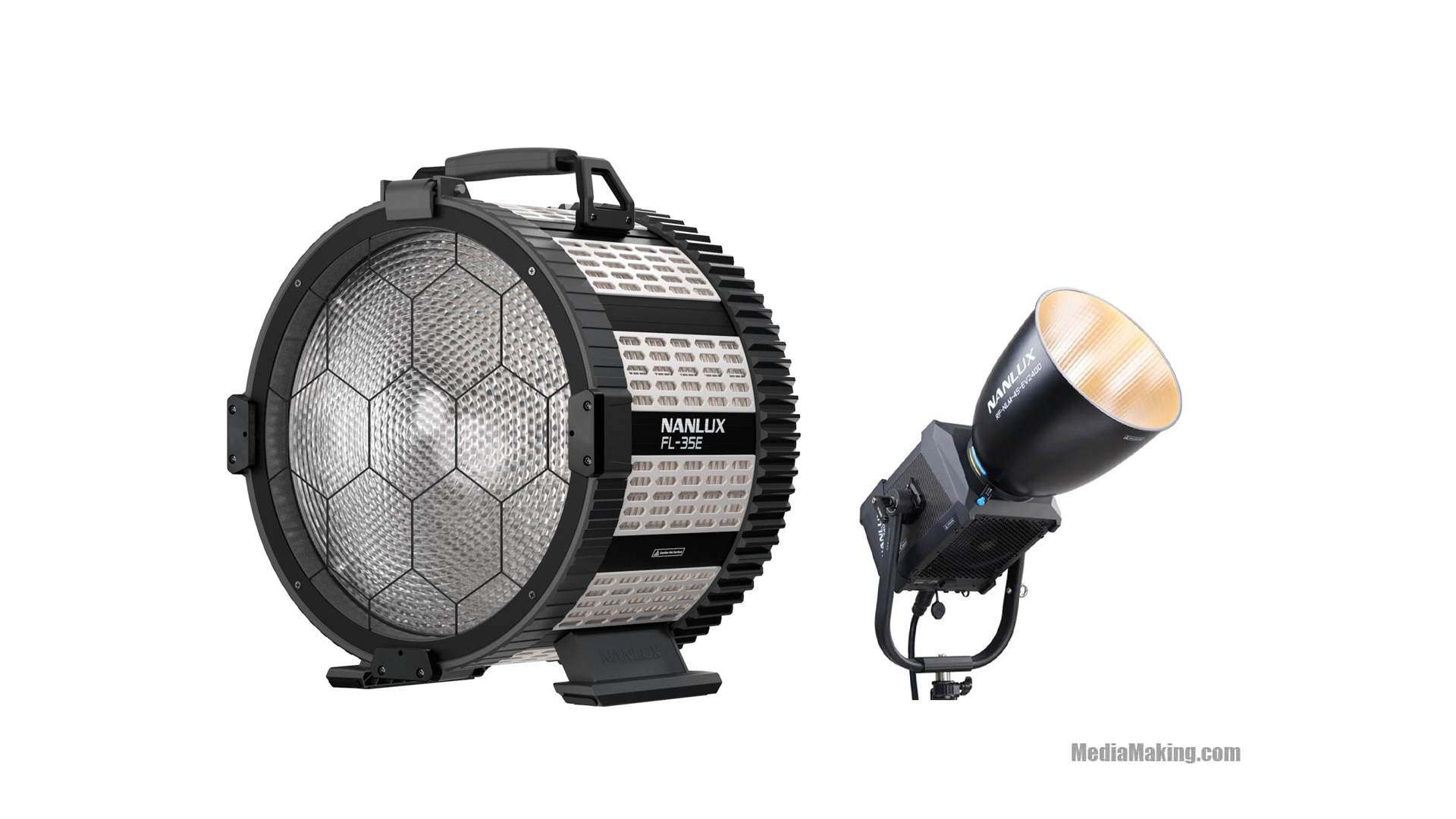 The Nanlux spot light Evoke 2400B two-color LED has a power rating of only 2400W and offers exceptional efficiency with a light output superior to 4KW HMIs or 10KW tungsten. Compared with conventional light sources, Evoke 2400B requires no preheating or cooling time, is flicker-free, with 0.0%-100.0% dimming and adjustable color temperature for greater flexibility. Changes during shooting sessions are now easy and time-saving.