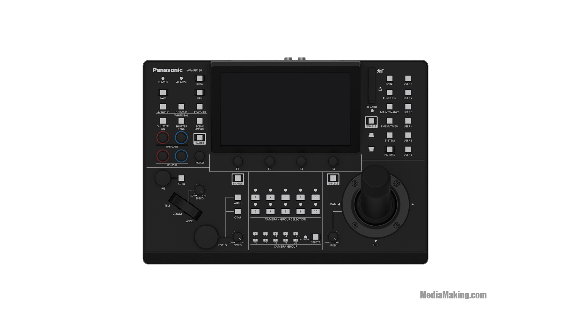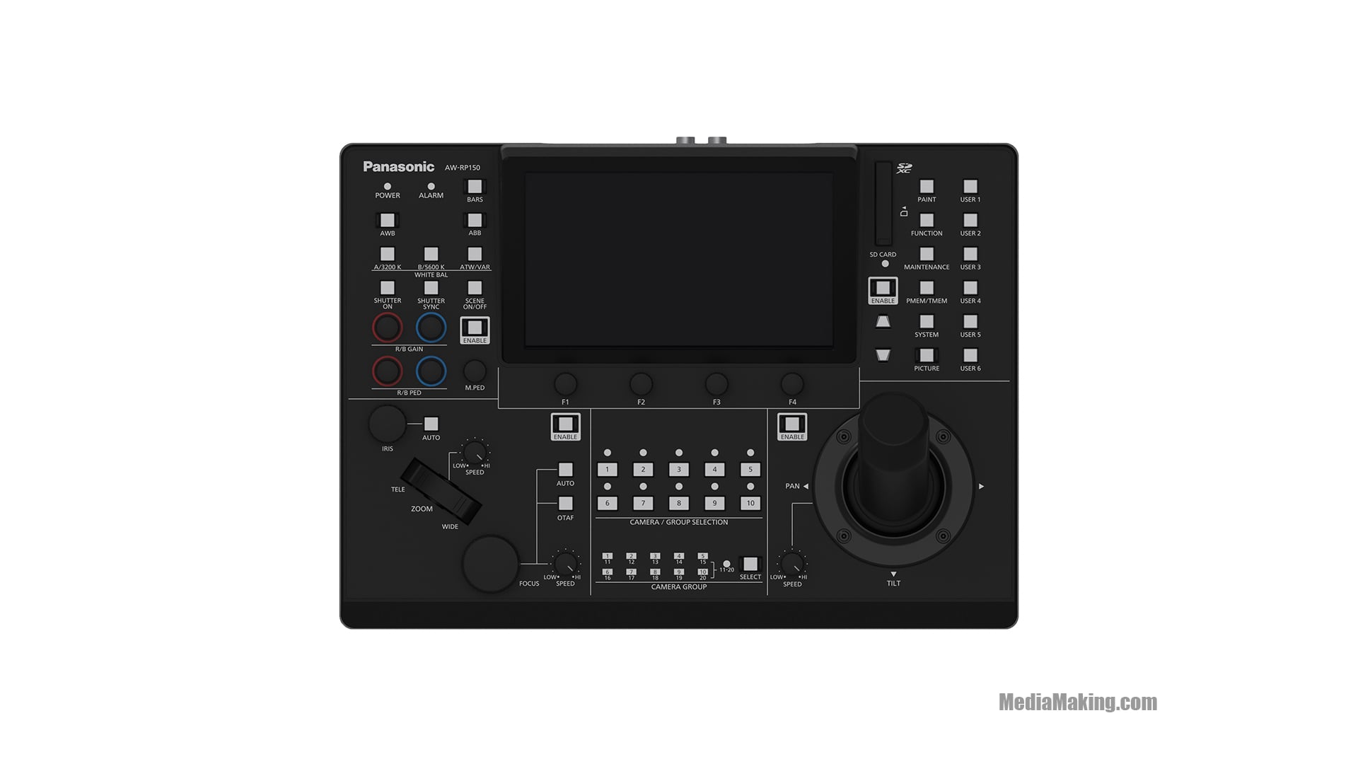 It offers excellent features including a one-handed joystick (controlling PTZ or Focus) and a large touch-panel LCD screen for monitoring and menu setting.