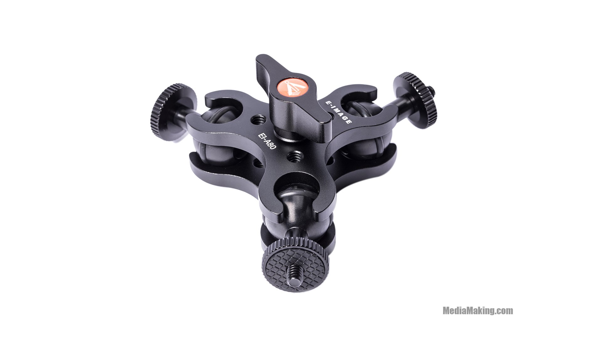 Il braccetto EI-A80 per luci e microfoni è dotato di 3 testine capaci di supportare lucine a LED e microfoni. Le testine, con attacchi da 1/4″, permettono di regolare a mano l’angolo e la posizione d’attacco. Vi sono inoltre 3 fori da 1/4″ per il montaggio di altri accessori.