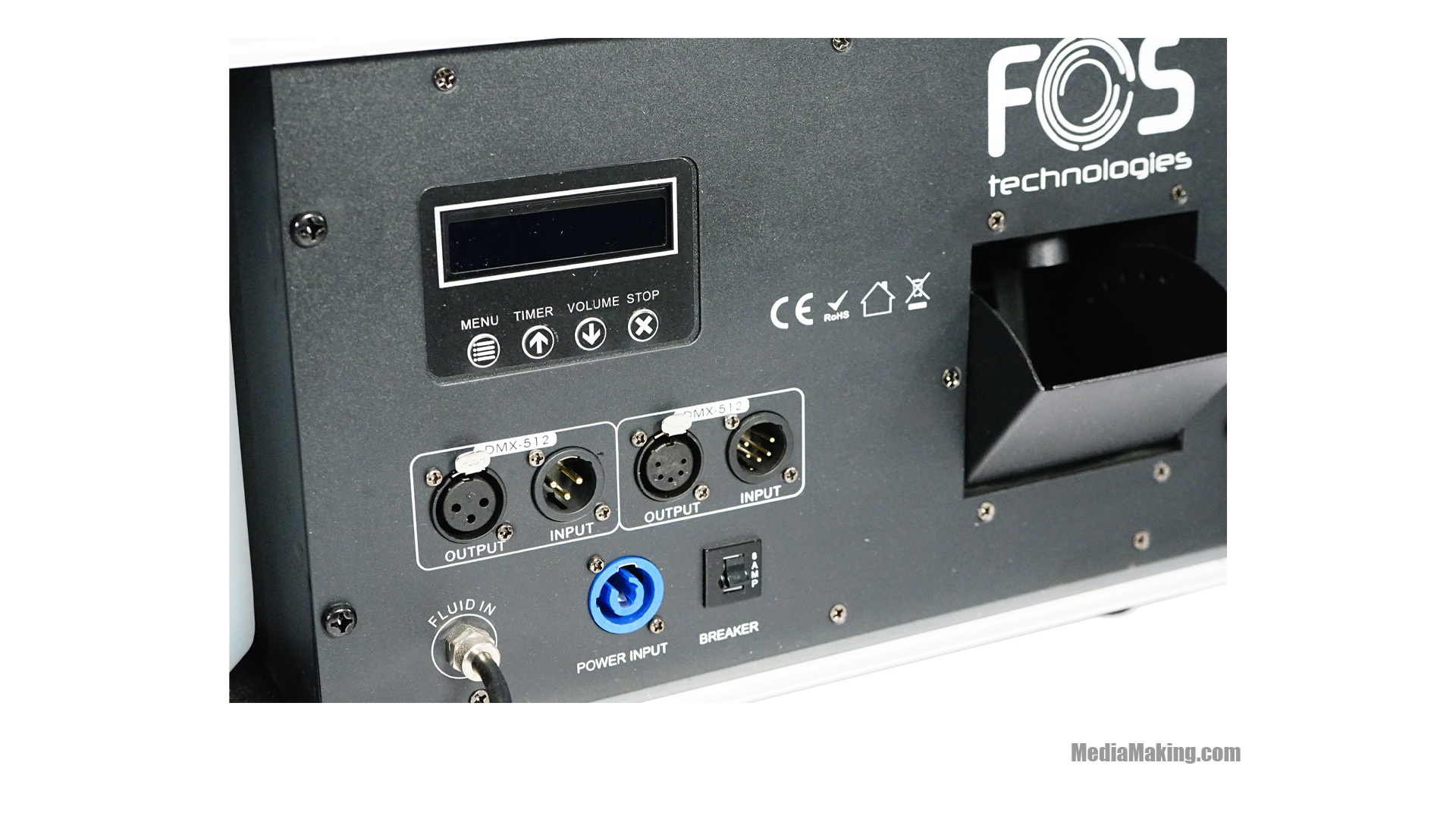 Macchina FOS Stage Haze 1000W professionale controllata Dmx per palchi. 1000 watt, ventola integrata molto silenziosa ma molto forte, display LCD di controllo, controllo DMX a 2 canali, consumo di fluido 0,5-16ml/min.