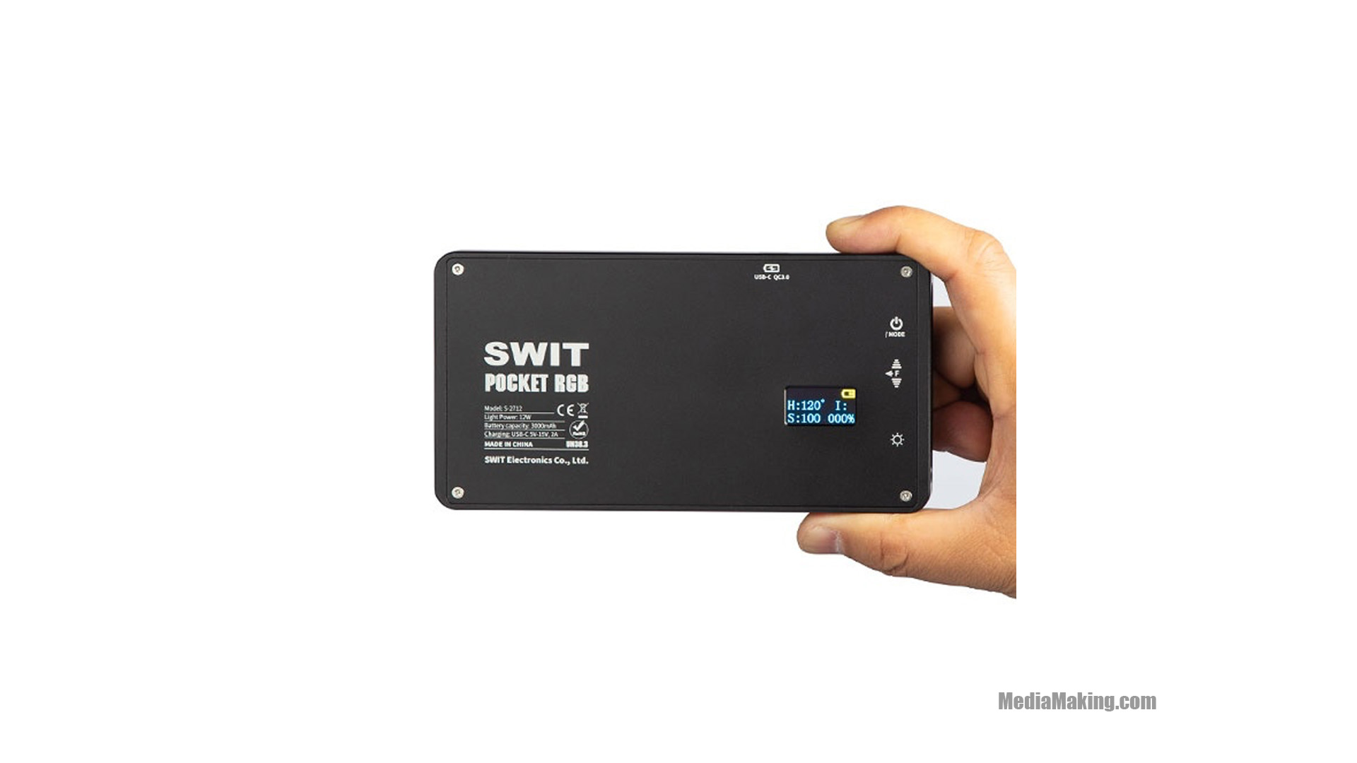 La luce LED RGB compatta SWIT S-2712 con effetti luce, pratica e facilmente trasportabile, include 96 LED RGB SMD e 108 LED SMD bi-colori. Produce colori RGB ed effetti luce creativi con regolazione HSI e 20 effetti demo per la simulazione di scenari comuni nelle riprese video e fotografiche. Dispone di una batteria integrata da 3000 mAh, che può alimentare la luce al 100% della potenza per almeno 1,5 ore. È possibile caricare la batteria tramite la porta USB di tipo C, con qualsiasi caricatore USB-C da 5-15 V. La luce LED RGB compatta SWIT S-2712 e fornita con un diffusore e una griglia a nido d’ape. Può essere ampiamente utilizzata nella produzione di video in esterno, in particolare per l’illuminazione in spazi ristretti.