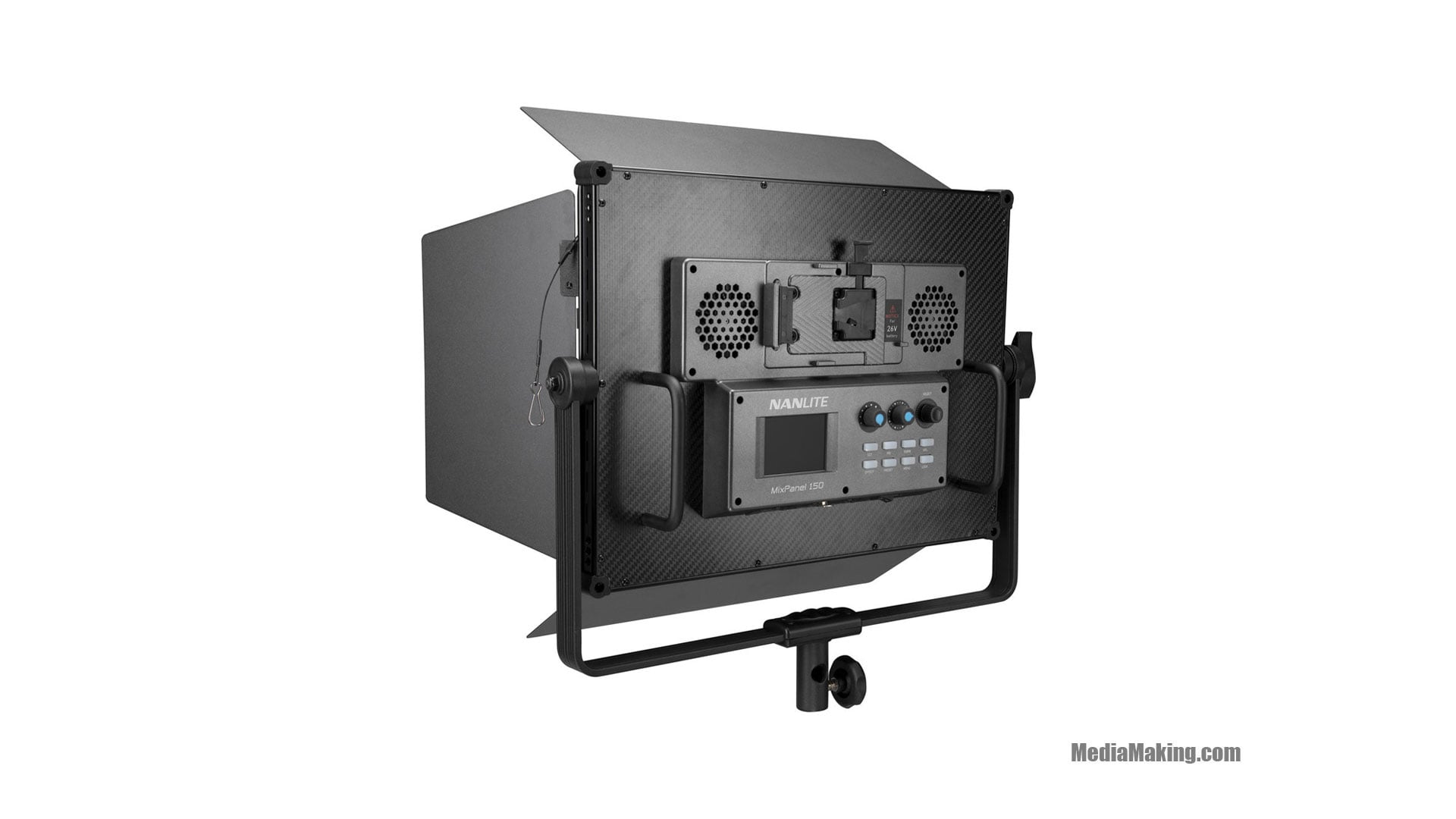 Questa Luce LED può essere usata in tutto il mondo grazie al suo adattatore da 100 a 240 VAC, ma funzionerà anche con batterie opzionali tramite la sua piastra V-mount.