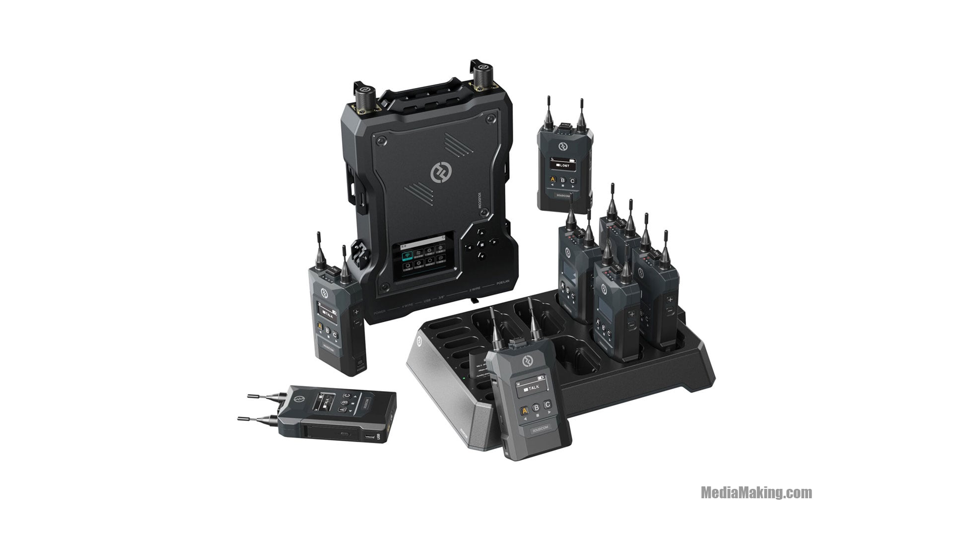 Il sistema intercom wireless full duplex Hollyland Solidcom M1 con stazione base e 8 trasmettitori con cuffie è la soluzione di comunicazione ideale per un piccolo team di produzione. Questa configurazione supporta fino a 8 membri del team, fornendo a ciascuno di loro un ricetrasmettitore wireless e cuffie LEMO monoauricolari professionali. Ideale per eventi di piccole e medie dimensioni (da 100 a 1000 ospiti circa), Solidcom M1 fornisce una comunicazione chiara e discorsiva senza interferenze e offre una facile configurazione basata su app o pagine web.