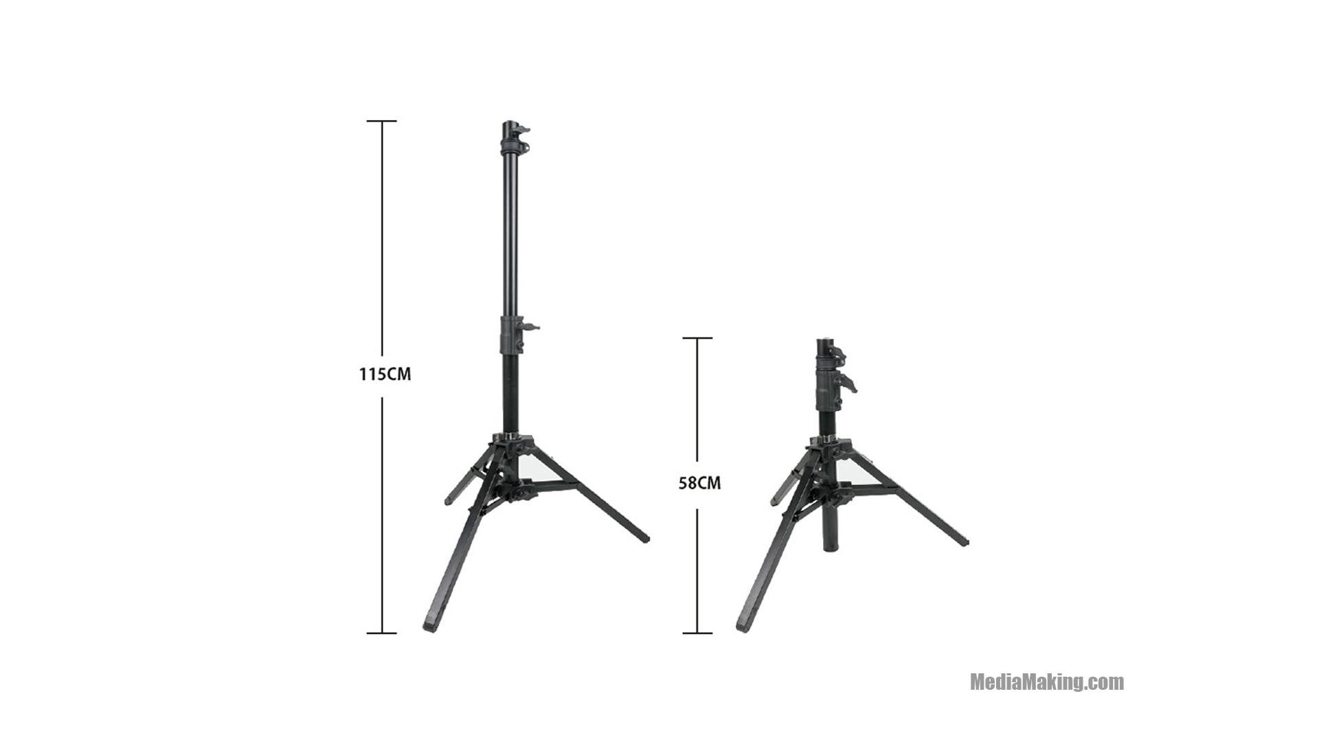 Stativo heavy duty 9109A PLUS per luci e accessori è progettato per sostenere carichi fino a 40 kg ad un’altezza massima di lavoro di 4,6 m.