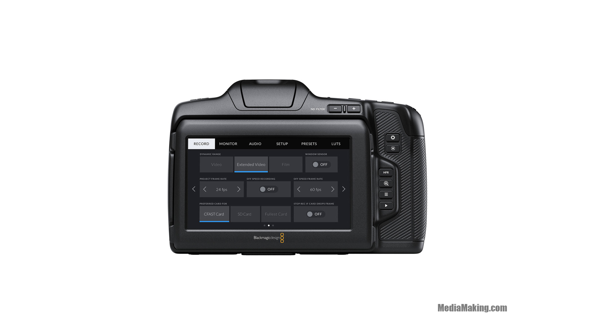 | Frame rate | 23.98, 24, 25, 29.97, 30, 50, 59.94 e 60 fps |