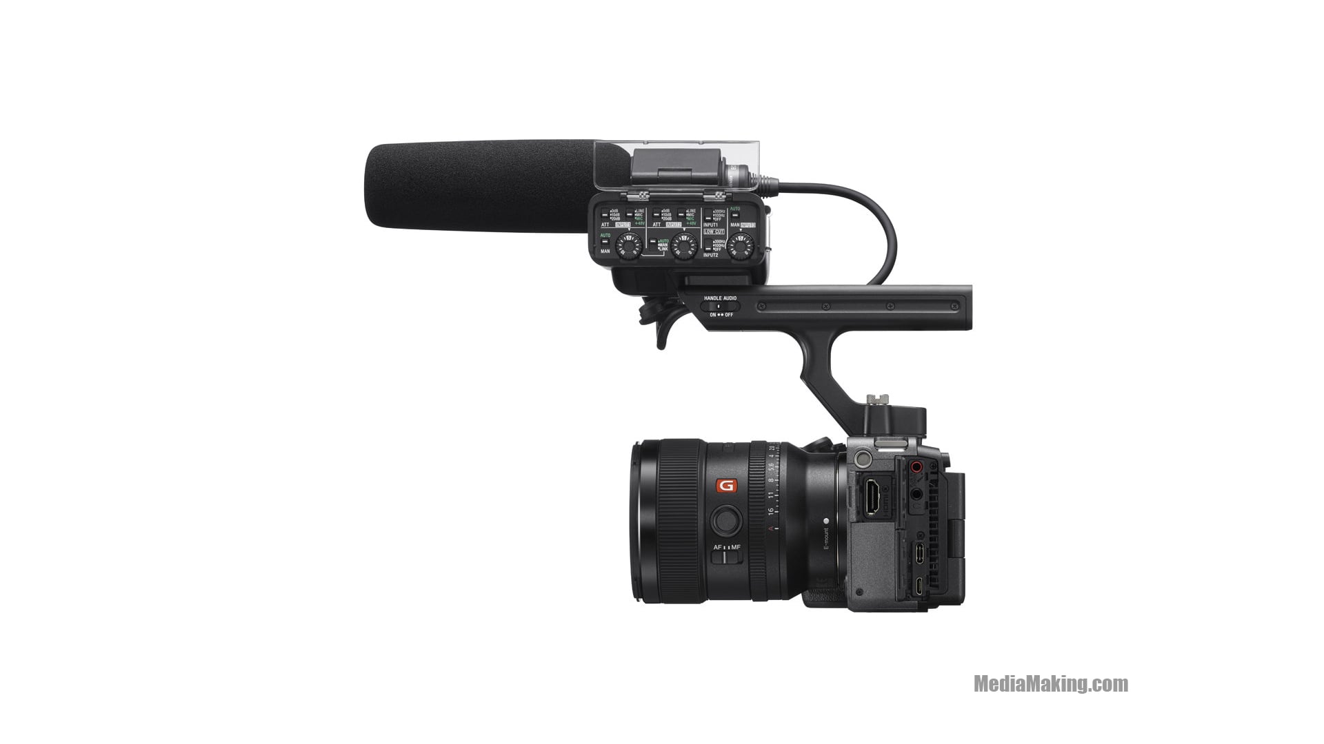 Oltre al microfono incorporato, i connettori XLR full-size sull’impugnatura consentono di collegare esternamente diversi microfoni professionali attraverso un’interfaccia audio digitale tramite supporto multi-interfaccia (MI). È possibile scegliere tra tre formati di registrazione, tra cui a 4 canali a 24 bit. È inoltre possibile la registrazione audio digitale collegando un microfono digitale come ECM-B1M.